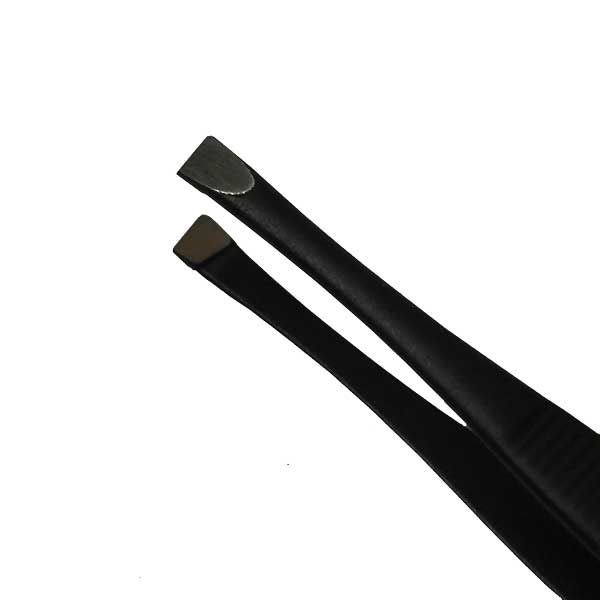 Fine Tip 9cm Angled Eyebrow Tweezers. Brow Tweezers come in two available styles and lengths. Black Coated Stainless Steel in 9cm or 9.5cm lengths.