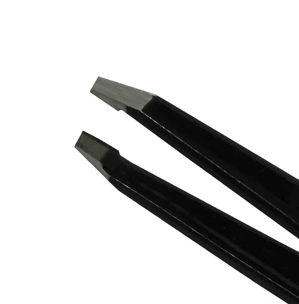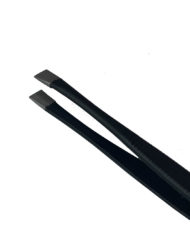Wide Angled Eyebrow Tweezer 9.5cm Long. Available in Two Styles and lengths. Black Coated Stainless Steel in 9cm or 9.5cm lengths. Used for Shaping, Plucking and Tweezering of Eyebrows.