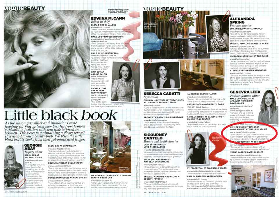 StudioLASH at The Lash Studio makes Vogue Australia’s ‘Little Black Book’ in their December 2012 issue.
