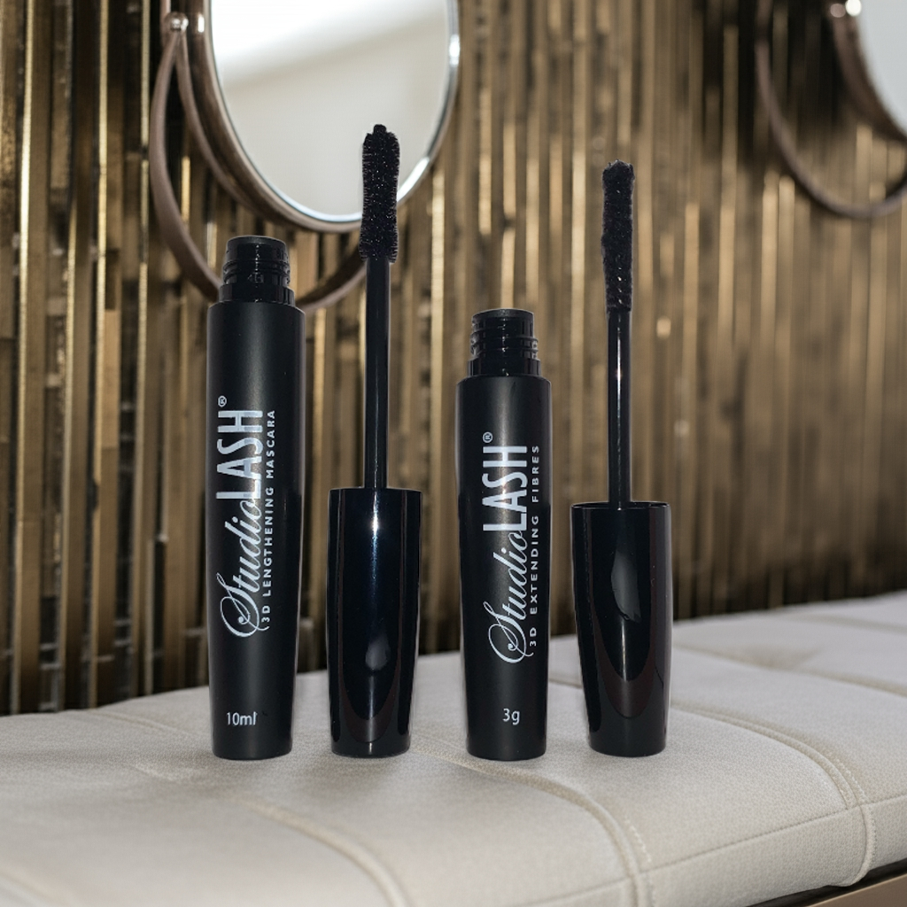 Two-Part Instant Eyelash Extension Mascara. Applied similar to traditional mascara, StudioLASH® 3D Fibre-Lash Mascara will thicken then lengthen your lashes for the Eyelash Extension look.