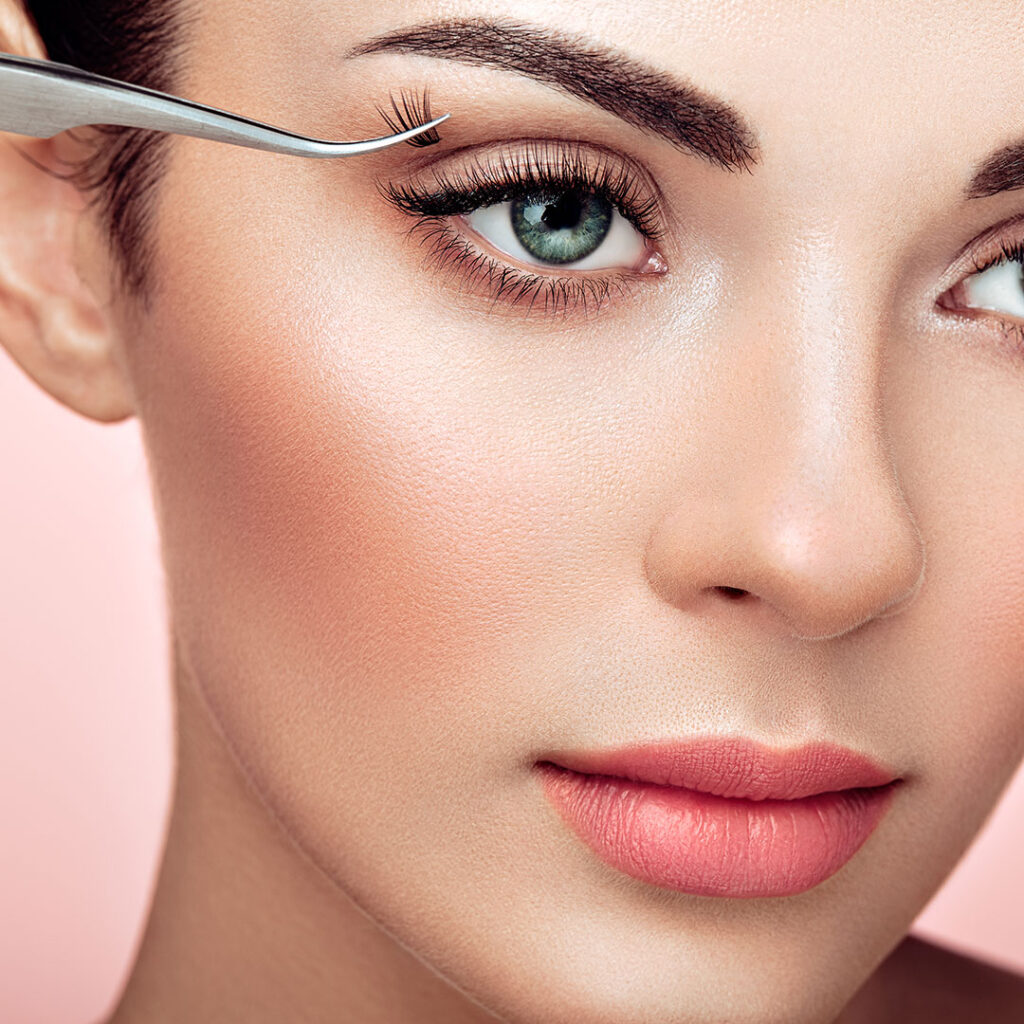 3: Gently fuse the extensions and natural lashes together with tweezers for a secure, long-lasting, all-day hold.